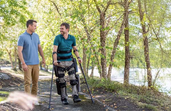 Wat is het? Draagbare robots die mensen met bijvoorbeeld een dwarslaesie helpen staan en stappen zetten. Thuisgebruik is in opkomst, maar vraagt altijd een zorgvuldige indicatie en training.